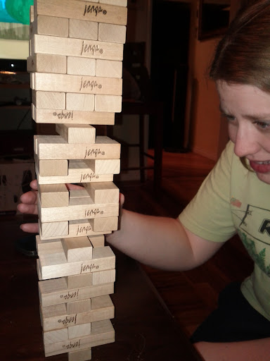 Nothing like a good 'ol game of Jenga. We had our niece Boston over this weekend for a sleep-over, good practice for us childless couples. She couldn't stay still long enough for a picture, unfortunately. A quick shot of Amber will have to suffice.